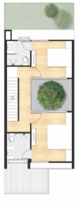 ทาวน์โฮม 3 ชั้น กลิ่นอายความเป็นญี่ปุ่นสมัยใหม่ เลือกใช้โทนสีและวัสดุที่ได้รับแรงบันดาลใจจากธรรมชาติ เพื่อให้บ้านสัมผัสถึงความอบอุ่น เรียบง่าย และสงบ