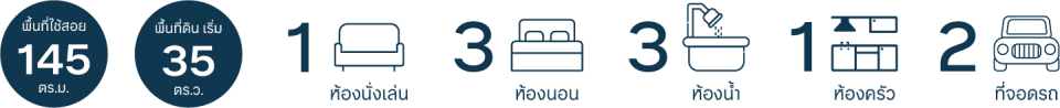 3 ห้องนอน 3 ห้องน้ำ 2 ที่จอดรถ