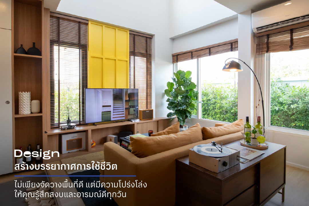 เรามอง Design เป็นความสบายที่ยั่งยืน บ้านที่ออกแบบอย่างเข้าใจ พิจารณาทั้งไลฟ์สไตล์ในวันนี้และการใช้ชีวิตในวันข้างหน้า เพื่อให้คุณรู้สึกปลอดภัย อุ่นใจ และพร้อมใช้ชีวิตได้อย่างเต็มที่ในทุกวัน เพราะบ้านควรเป็นที่ที่คุณรู้สึกดีเสมอเมื่อกลับมา